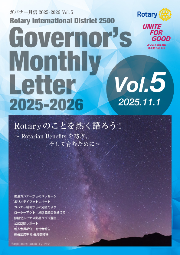 2025-2026年度 ガバナー月信 Vol.5はガバナー月信のページよりご覧いただけます。